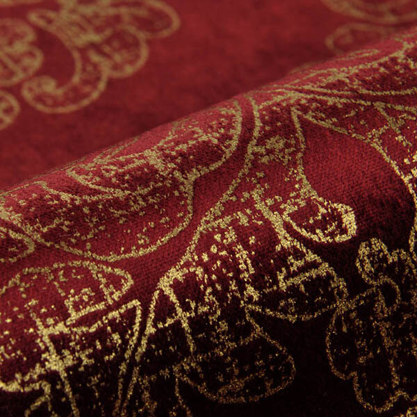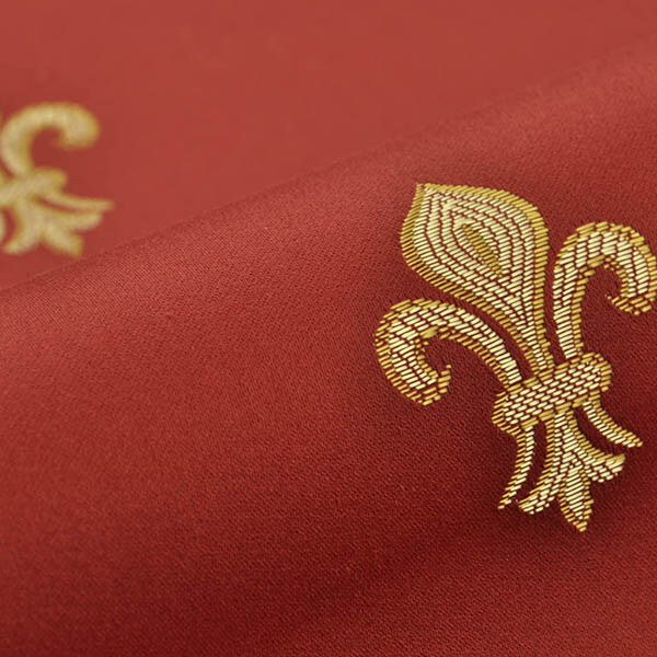 AN1517 Портьерная ткань красного цвета с классическим вензелем