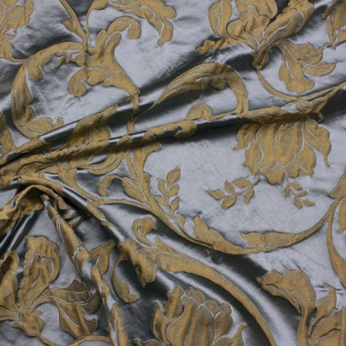 AN1520 Портьерная ткань серо-голубого цвета с классическим рисунком